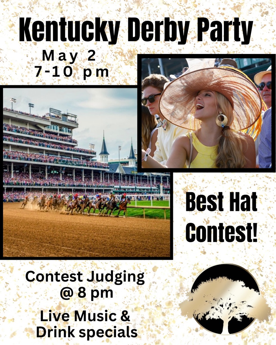 Join us on May 2 for our Kentucky Derby Party and Hat Contest. Party starts at 7 pm with hat judging at 8 pm! Live music with Cotton Moon & drink Specials to bring in the derby. Â